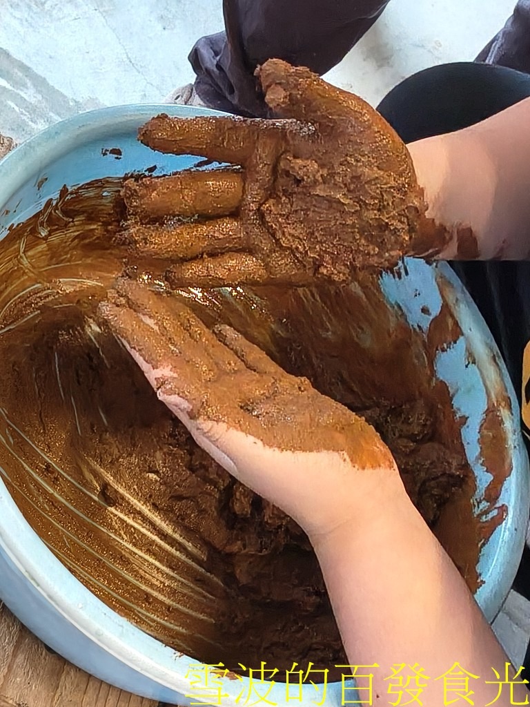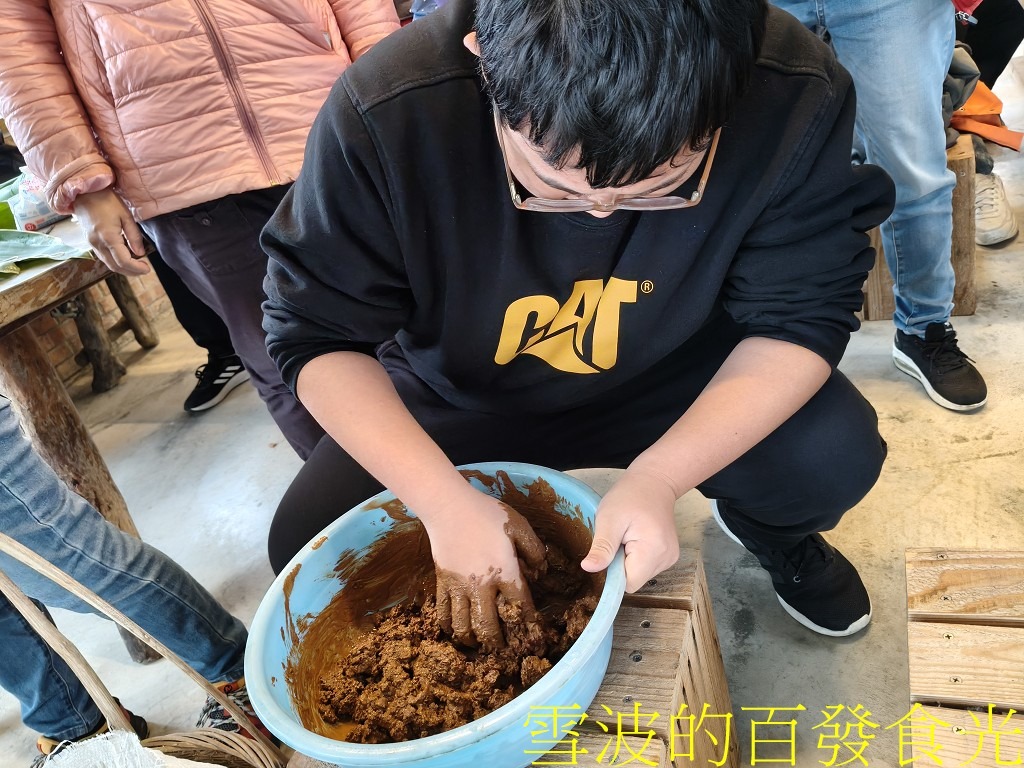 我們當天體驗的是紅土鹹蛋 DIY,跟著農場主人把鴨蛋用紅土與海鹽包起來,靜靜等待熟成。