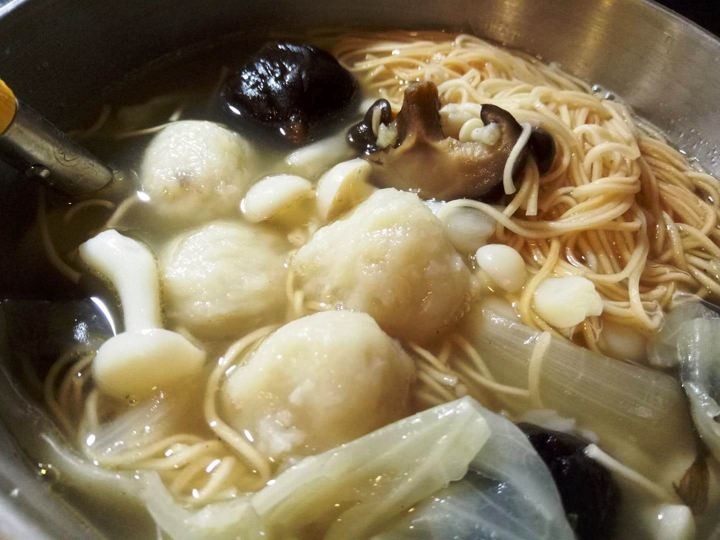 綜合湯,裡面有魚丸跟豆干包,使用大骨當湯底,尤其湯裡還加了冬菜與芹菜調味,喝起來非常的順口。
