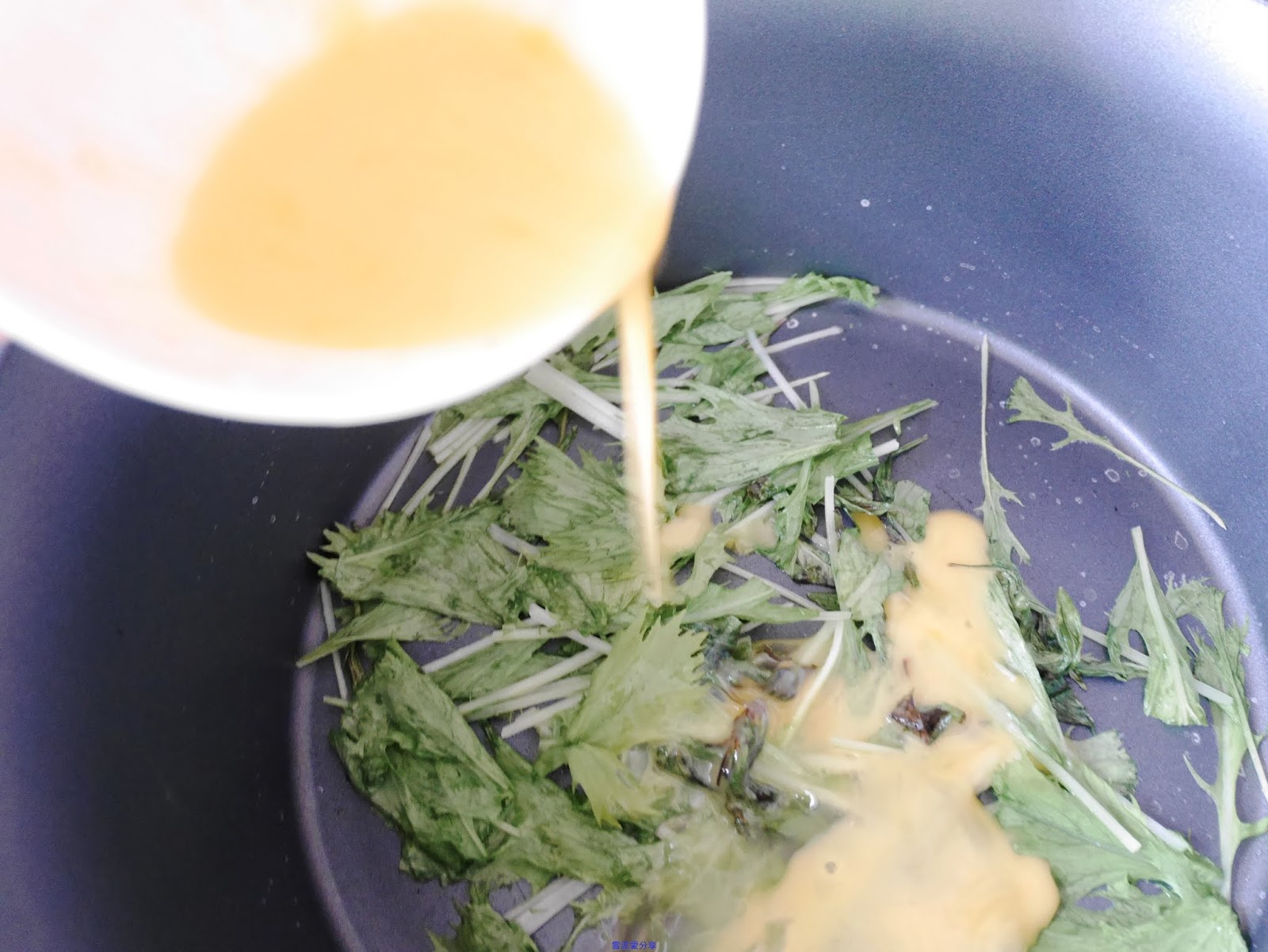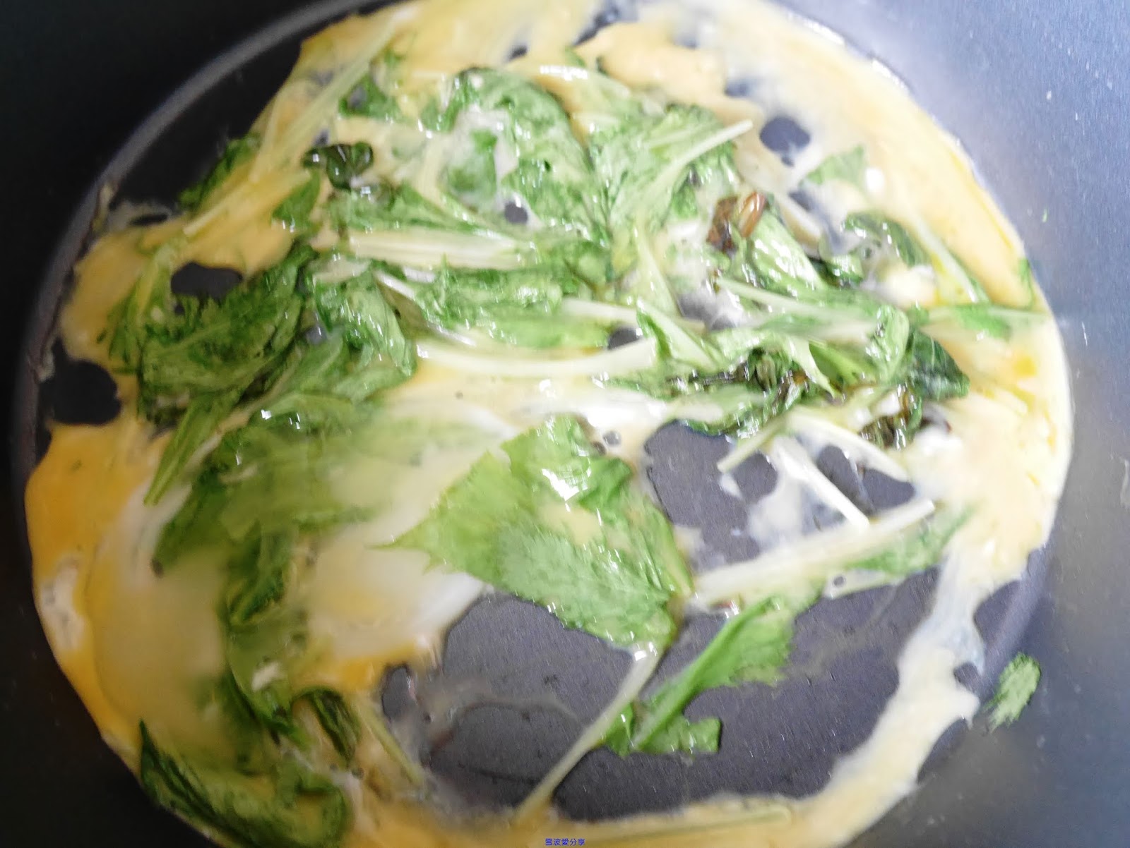 5.加入京水白菜一起炒.(炒京水白菜不用炒太久,約1分鐘即可)