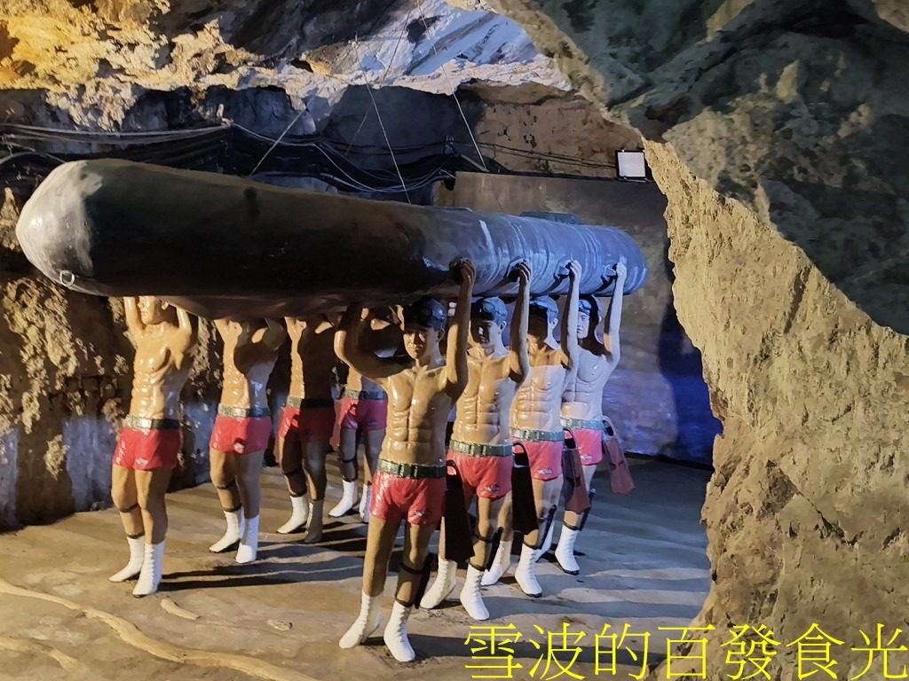 坑道裡還保留著許多模型,重現當時官兵的生活樣貌,從簡陋的宿舍到炸藥作業場,每一幕都像歷史的碎片,在濕冷的坑道裡慢慢拼湊出一段沈重記憶。
