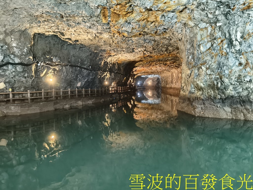 進到坑道深處,最讓我驚艷的,是岩壁潮濕時那種自帶濾鏡的光澤感,像打上一層柔焦,水面一高,整個倒影就像湖面上映著電影場景。