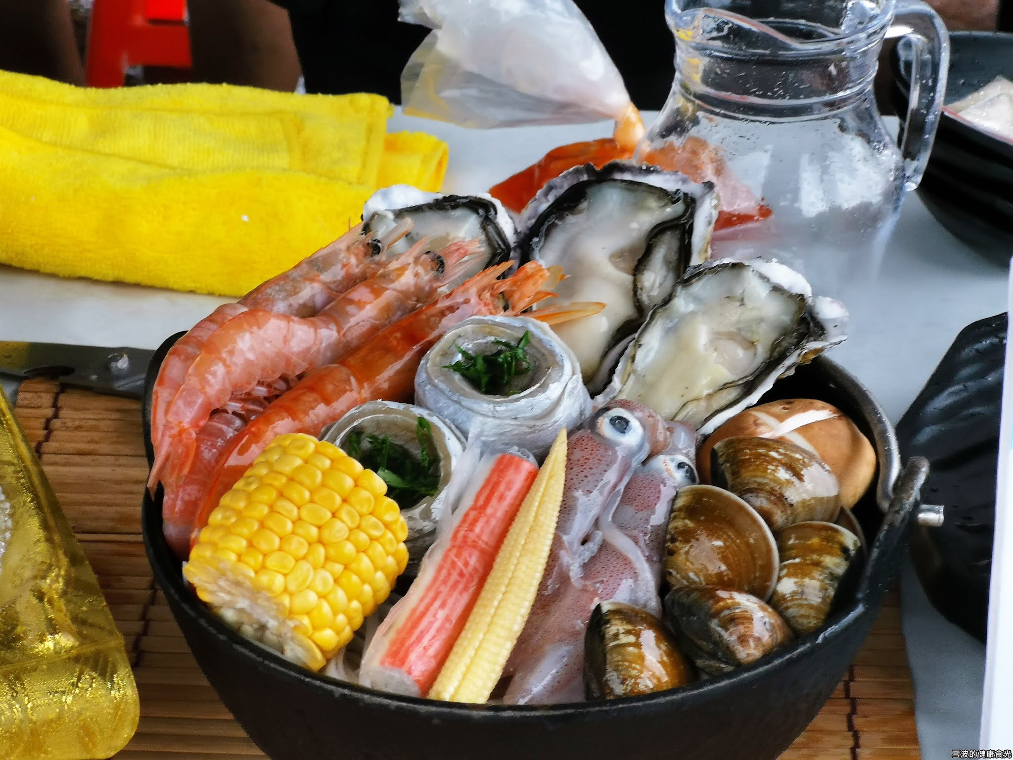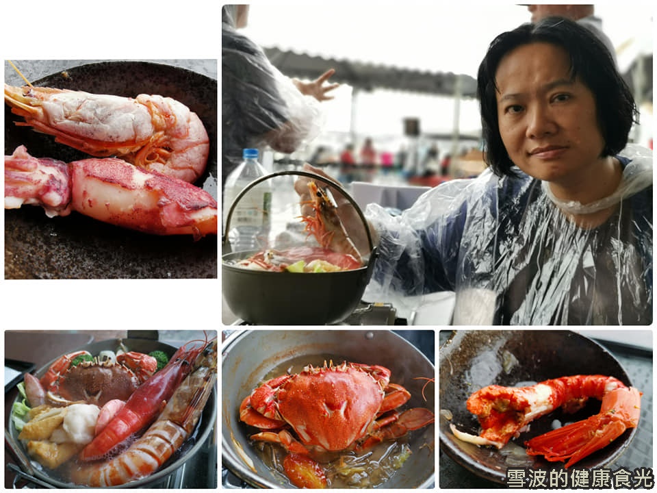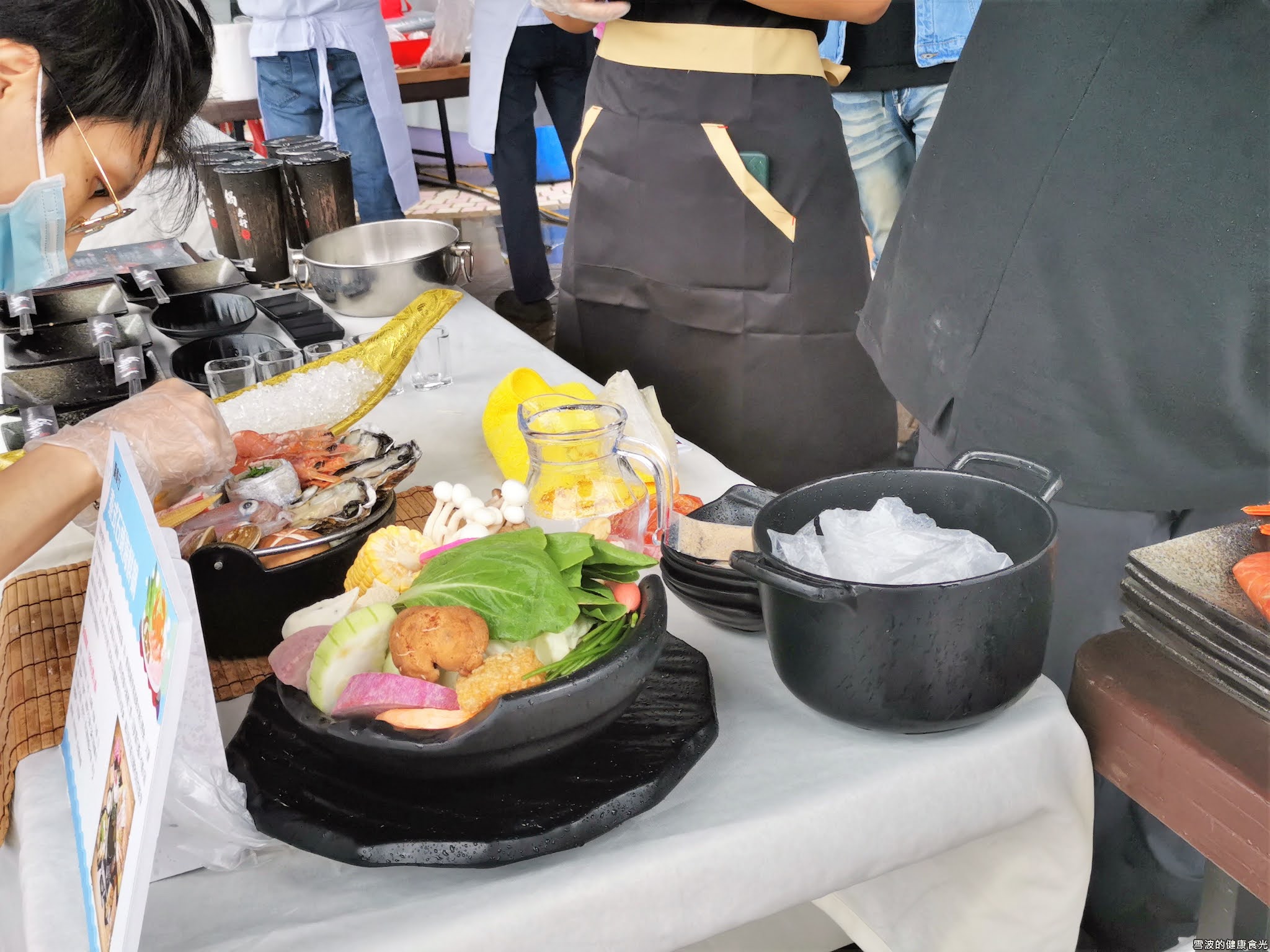 比賽之餘現場還有提供五鍋 「黃金漁夫鍋」 DIY抽獎,很開心我有抽中其中一鍋,抓緊時間趕快來看我這鍋,我吃的這鍋可不是異國主題漁夫鍋,而是基隆市政府舉辦漁夫鍋活動,前兩年秒殺的漁夫鍋,滿滿的「黃金漁夫鍋」選用基隆黃金蟹、基隆蝦三寶及鎖管、炭烤吉古拉等滿滿在地食材,色彩繽紛,光看就讓我流口水。